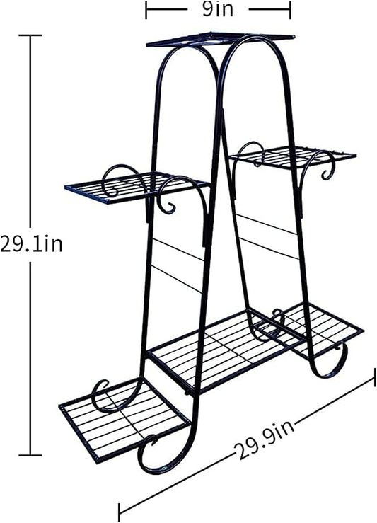 Metal Plant Stand, 6 Tier, 29.9 X 9 X 29.1 In, Black