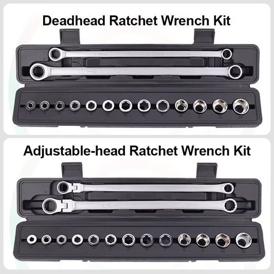 Ultimate 15-Piece Adjustable Ratchet Wrench Kit - 8-24mm Metric, 180° Chrome Vanadium Steel Spanners